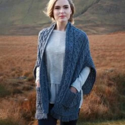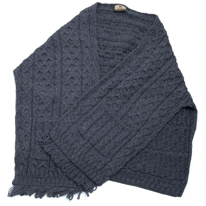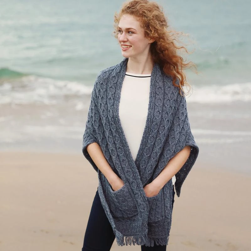 Made in Ireland of 100% genuine Merino wool. Dry clean or hand wash only. Wrap are one size fits most.