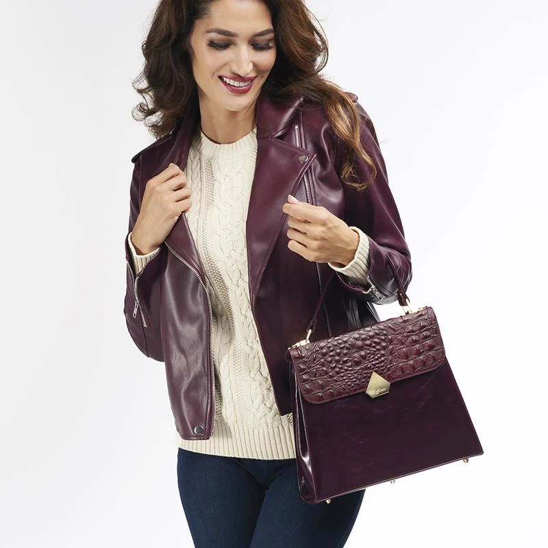 Why not make her the croc of the walk with our Italian Crocodile Handbag? Crafted in Italy by some of that boot-shaped country’s greatest artisans, this bag is made from fine, crocodile-embossed calfskin leather in wild burgundy. With its elegant proportions, assertive metal pentagon buckle and deep, luxurious color, this handbag is a stunner.Â
