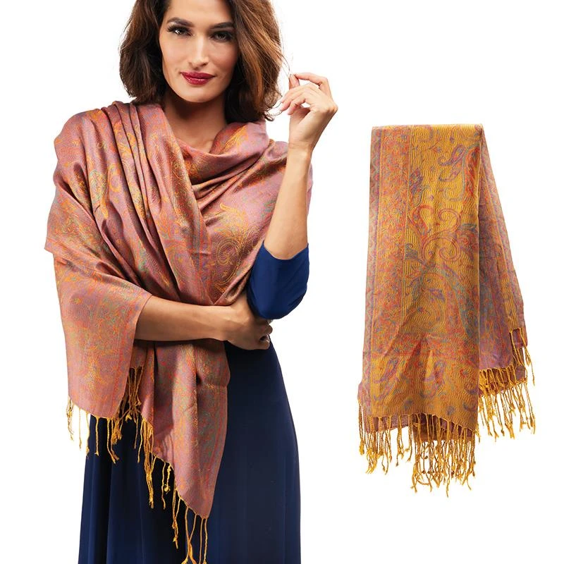Modal fabric is having a moment. Originally developed in Japan as an alternative to silk, modal has gained momentum in recent years as demand for sustainable textiles has increased. A bio-based fabric made from spun beech tree cellulose, modal is soft, warm, moisture-wicking, and shrink-, pill- and wrinkle-resistant — and requires far less water to produce than cotton. Its breathability and drape make it easy to wear, even in humid climates. We’ve spun all that ingenuity into a gorgeous, shimmering golden brown shawl so you never have to go cold-shouldered again.